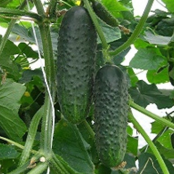 - Форма плода — зеленец среднего размера, цилиндрический, зеленый, бугорки среднего размера, с шипами, восковой налет слабый;