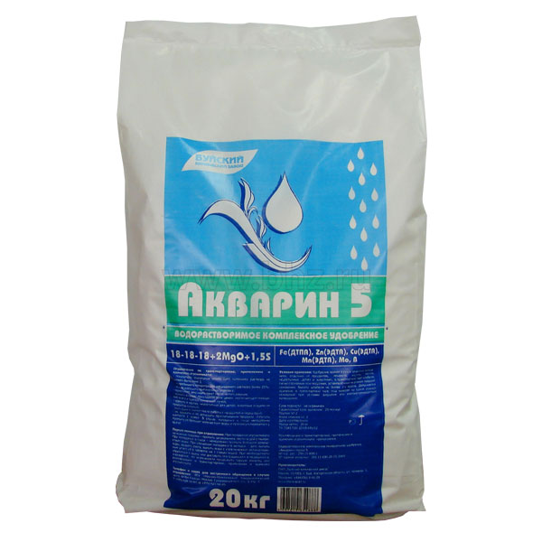 Акварин 5, 18-18-18+2MgO+1.5S + МЭ 20 кг по самой выгодной цене можно купить в магазине ХИМСТАФФ. Гарантия качества и наличия на складе, доставка по всей России. Экспресс доставка по Москве.