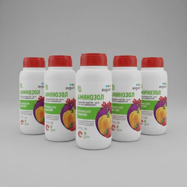 Аминозол — уникальная органическая подкормка с комплексом аминокислот для различных культур. В его состав включены более 20 связанных аминокислот животного происхождения, которые участвуют во всех важных процессах жизнедеятельности, а также в синтезе фитогормонов. Например, образуют индол-3-уксусную кислоту, которая действует как регулятор роста.