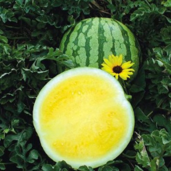 Безсемянный гибрид (триплоид) на основной сезон с яркой желтой мякотью,хорошо показывает себя в богарных условиях благодаря мощной корневой системе и силе роста. Интересен для покупателей,страдающих аллергией.