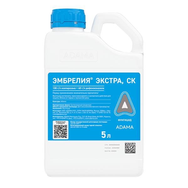 - Изопиразам – новое действующее вещество из группы ингибиторов сукцинат-дегидрогеназы для защиты плодовых культур. Обладает выраженными защитными и профилактическими свойствами. Дифеноконазол – относится к группе триазолов и обладает лечебным действием;