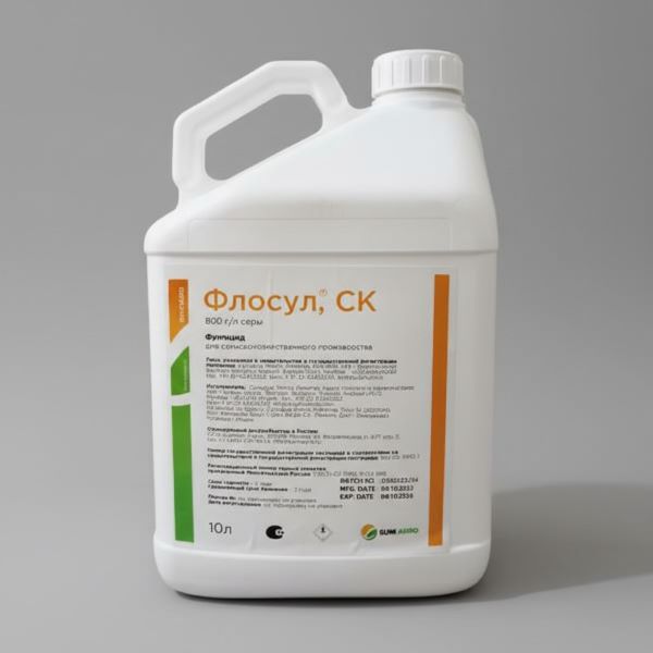 Фунгицид с акарицидным эффектом на основе жидкой серы. Обладает искореняющим действием на любой стадии развития патогена. Опрыскивание Флосул® проводят профилактически или при первых признаках заражения.