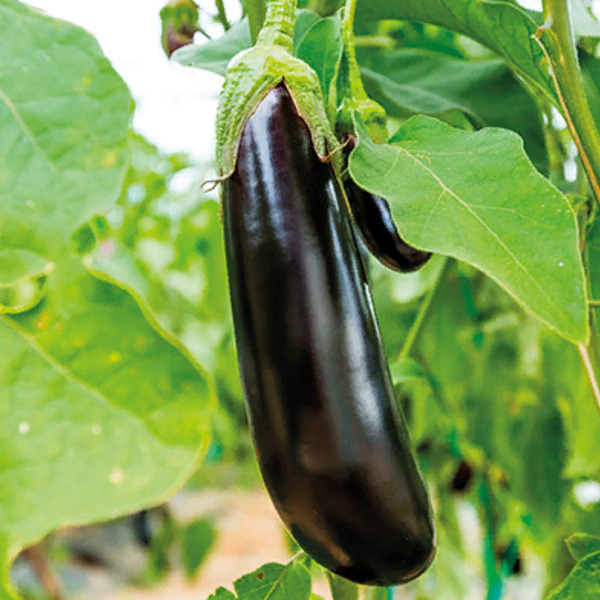 - Плоды грушевидной формы, длиной 20-22 см, диаметром 5-6 см, массой 300-350 г, гладкие, блестящие, насыщенной темно-фиолетовой окраски. Интенсивность и окраски сохраняется и в жаркие месяцы. Чашечка зеленая. Мякоть белая, плотная, без горечи;