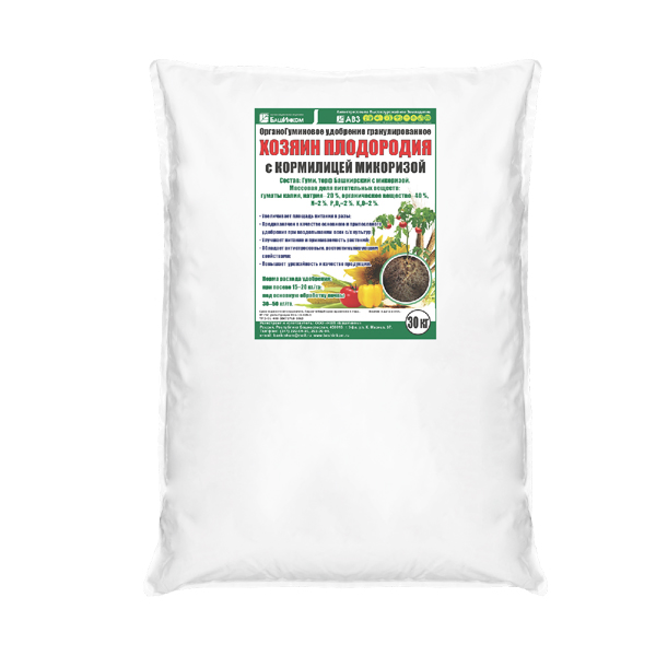 Хозяин Плодородия с Кормилицей Микоризой предназначен для основного и припосевного удобрения всех сельскохозяйственных культур, повышения плодородия и оздоровления почвы.