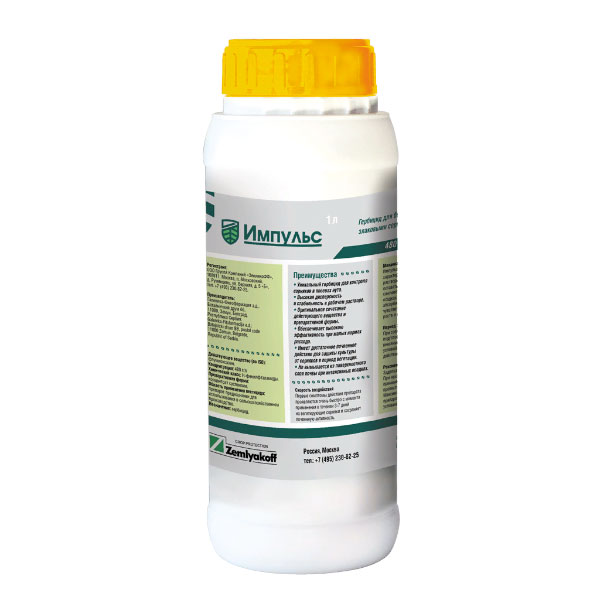 Импульс создает почвенный экран, что характеризуется его низкой растворимостью в воде и позволяет ему оставаться в первых нескольких сантиметрах почвы даже при обильных осадках. Активное действие проявляется абсорбированием препарата проростками чувствительных растений, остановку их роста и гибель.