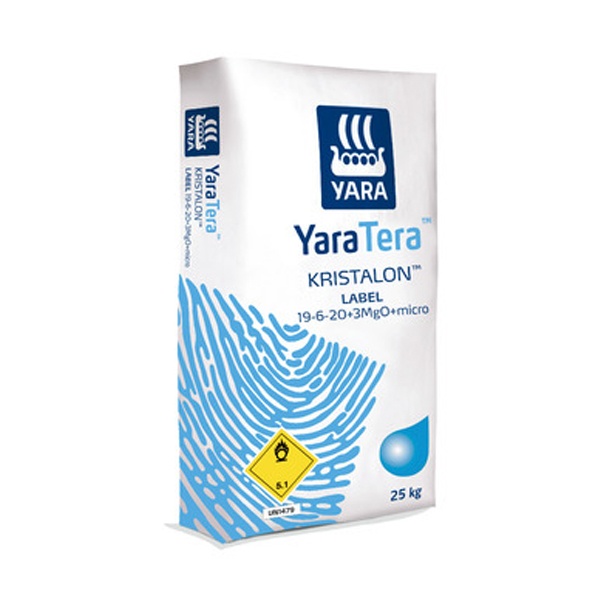 Комплексное водорастворимое удобрение YaraTera KRISTALON 19-6-20 Blue label. Применяется для подкормки любых культур через системы капильного полива и дождевальные установки на стадии генеративного роста.