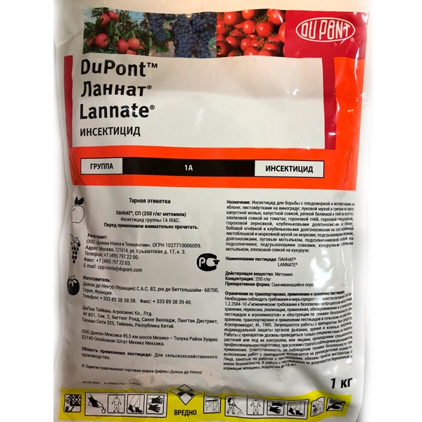 Ланнат несовместим с бордосской жидкостью, известково-серным раствором, железом или высокощелочными растворами. Слабощелочные растворы необходимо использовать немедленно после приготовления во избежание потери инсектицидного действия!