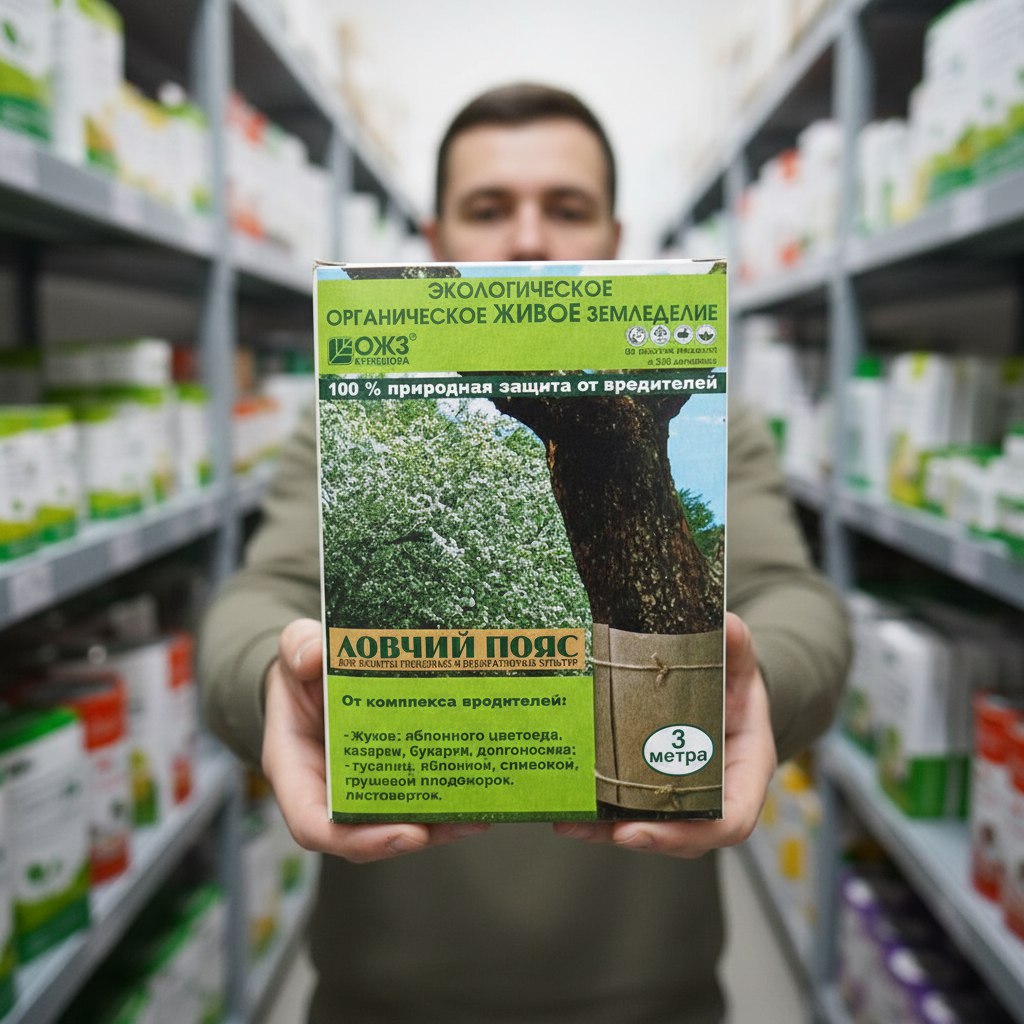 Ловчий пояс – это полностью безопасное и удобное в употреблении средство. Установленный однократно, он долгое время сдерживает вредителей, которые пытаются забраться в крону по стволу. Ловчий пояс состоит из ленты, на которую нанесен специальный энтомологический клей.