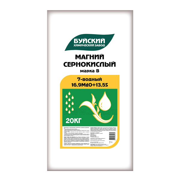 Сульфат магния марка Б — магниевое серосодержащее удобрение для выращивания различных культур на всех типах почв. Повышает урожайность, улучшает вкусовые качества овощных культур за счет увеличения содержания в плодах крахмала и витаминов. Используется при производстве сложносмешанных минеральных и органоминеральных удобрений, почвенных и торфяных грунтов.