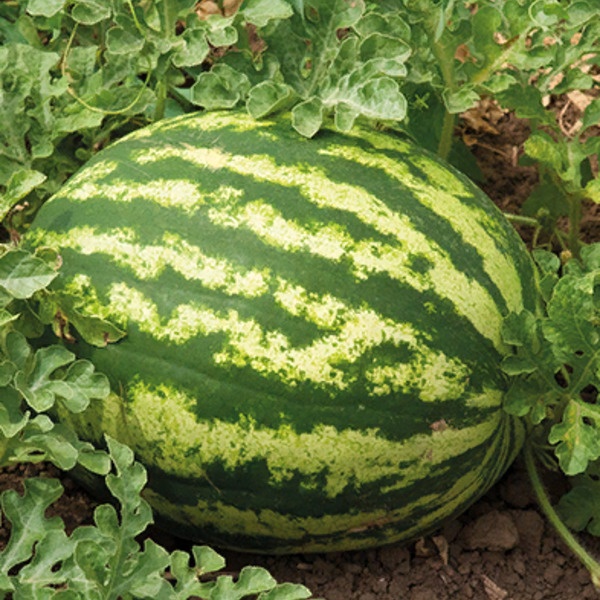 - Плоды округлые массой 6-8 кг г, гладкие с рисунком в виде зеленых полос средней толщины на светло-зеленом фоне;