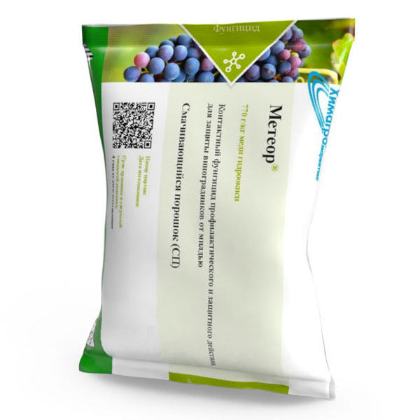 Фунгицидное действие препарата Метеор заключается в том, что во влаге, необходимой для прорастания спор патогенных грибов, содержится медь, которая адсорбируется цитоплазмой клеток грибов, споры постепенно адсорбируют медь из растворов до летальной дозы, что препятствует их прорастанию.