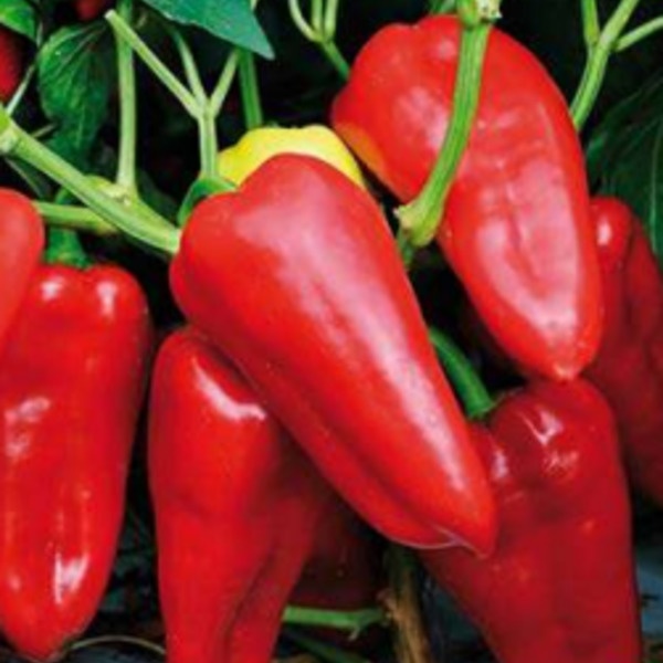 Обильный урожай крупных плодов. Новый гибрид среднего срока созревания. Прочный центральный стебель, хорошо развитые корневая система и листовой аппарат. Формирует высокий урожай однотипных плодов массой 190-200 г, длиной до 15 см. Сочные плоды с толстой стенкой в форме удлинённого конуса. Светло-зелёная окраска плодов в технической спелости переходит в красную.