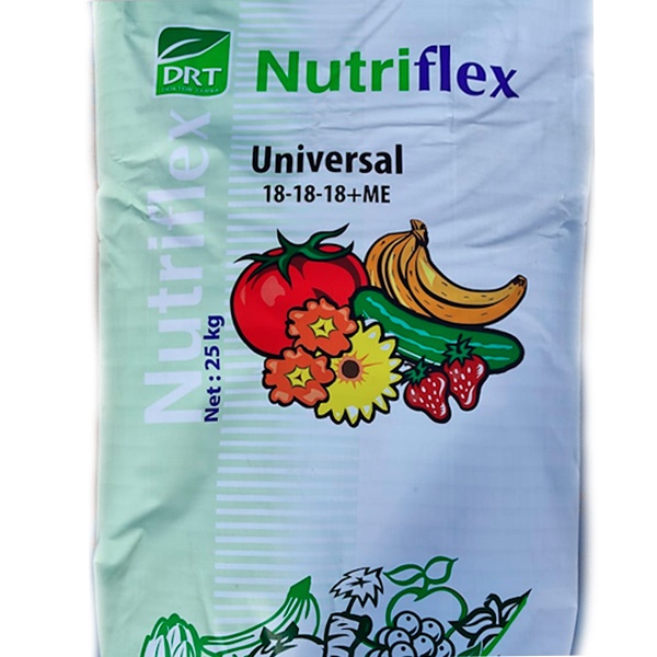 Nutriflex Universal-18-18-18 серия специальных комплексных удобрений с микроэлементами. Удобрения разработаны с учетом физиологической потребности конкретной культуры в период формирования и развития генеративных органов растений. Они созданы по принципу «все в одном» и используются на отдельных группах культур.
