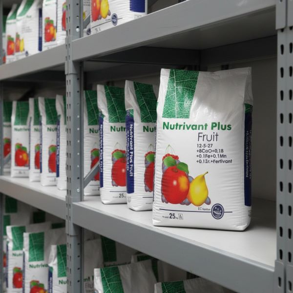 Nutrivant Plus Fruit — комплексное минеральное удобрение разработано специально для внекорневого питания плодовых и ягодных культур. Экологически безопасно для растений, людей и окружающей среды. Удобрение имеет в своем составе специальный прилипатель — Фертивант — специальная разработка, которая пролонгирует действие удобрения до 15-20 дней, что позволяет полностью усвоить полезные элементы. Безхлорное удобрение. Растворяется в воде с высоким рH благодаря лимонной кислоте, которая смягчает воду. Применение Нутриванта Плюс позволяет повысить урожайность на 15%, повысить качество товарной продукции и ускорить дозревание на 5-7 дней.