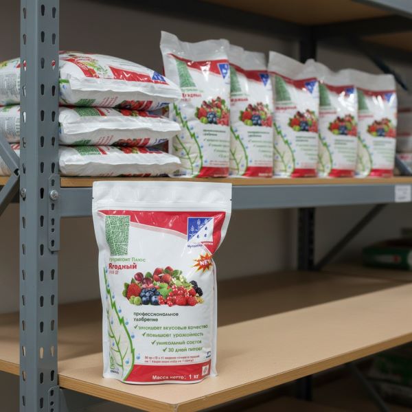 Азотосодержащее фосфорно-калийное удобрение с микроэлементами и фертивантом для листовой подкормки ягодных культур. Восполняет недостаток макро- и микроэлементов, удерживает питательные вещества на листе до 30 дней, повышает устойчивость к различным заболеваниям и стрессам, смягчает «жесткую» воду, нормализует pH, улучшает урожайность и вкусовые качества.