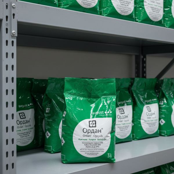 Благодаря содержанию двух активных компонентов с различным механизмом подавления возбудителей болезней, Ордан обладает профилактическим, лечащим и искореняющим действием. Хлорокись меди (контактный компонент) угнетает ферменты и жизненно важные компоненты клеток фитопатогенных грибов. Цимоксанил (локально-системный компонент) проникает в листья в течение одного часа и ингибирует биосинтез РНК в клетках патогенов.