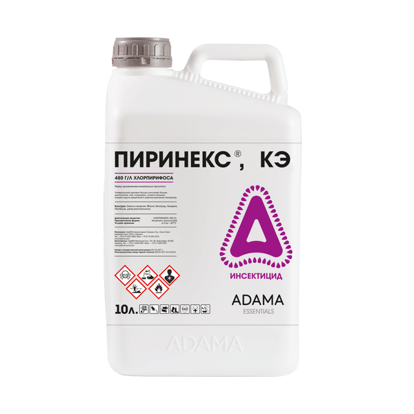 - Пиринекс® универсальный препарат, используемый на десятках культур, особенно эффективен против грызущих и сосущих вредителей, принадлежащих к следующим группам: плодожорки и моли, тли и клещи, совки, мухи, долгоносики и другие жуки, блошки, клопы. Является одним из ведущих препаратов в международных программах по борьбе с саранчовыми;