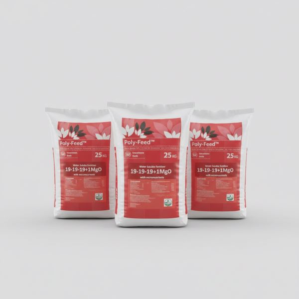 Комплексное водорастворимое удобрение для фертигации, капельного полива, и внекорневых подкормок. Фосфор и калий полностью растворимы в воде и в нейтральном растворе цитрата аммония. Poly-Feed питает растения в соответствии с точными потребностями во время критических фаз развития с целью получения максимальных урожаев наивысшего качества. Листовая подкормка продуктом Поли-Фид обычно применяется в дополнение к удобрениям вносимых в почву. При определенных условиях роста листовая подкормка продуктом Поли-Фид может заменить основное внесение удобрений, главным образом для растительных культур с коротким сроком вегетации.