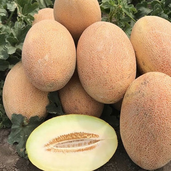 Плоды: удлиненные, выровненные, с высоким содержанием сахара, кожура снаружи привлекательно покрыта сеткой, очень твердая.