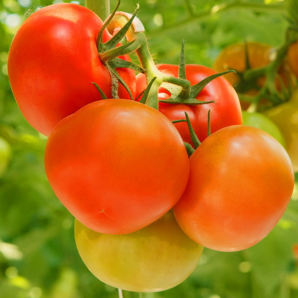- Плоды округлые, слегка приплюснутые(индекс формы плода 0,9-0,95), плотные, с хорошими вкусовыми и потребительскими качествами. В стадии технической спелости интенсивно-зеленые без пятна у основания, в стадии биологической спелости насыщенно-красные;