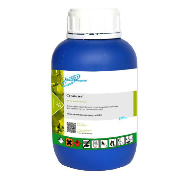 - Стробитек — контактный фунгицид с лечебным действием и частичным локально-системным эффектом.