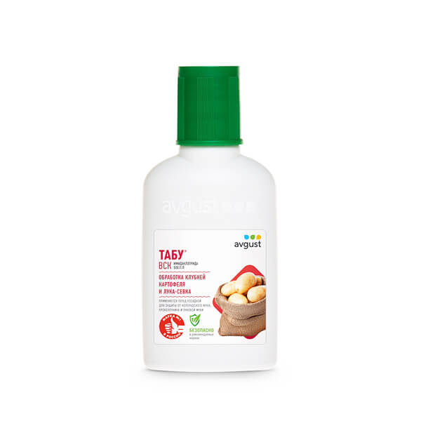 Современный протравитель клубней картофеля от колорадского жука, проволочника и лука-севка от луковой мухи. Благодаря ярко выраженным системным свойствам, Табу равномерно распределяется по вегетирующим органам растения, обеспечивая их надежную защиту с самого момента посадки. Препаративная форма: ВСК — водно-суспензионный концентрат.