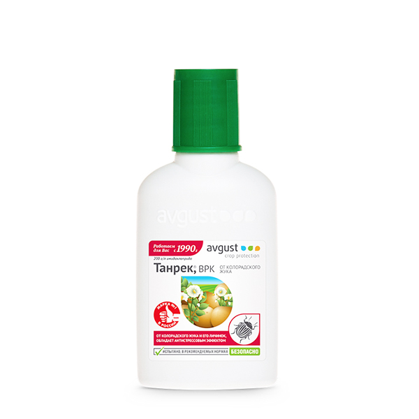 «Танрек» – средство системного действия для уничтожения колорадского жука на картофеле на всех стадиях его развития. Проверенный временем препарат для борьбы с личинками и взрослыми особями колорадского жука. Препаративная форма: ВРК — водорастворимый концентрат.