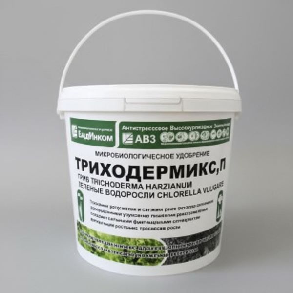 Гриб Trichoderma harzianum, штамм 3/78, титр не менее 1х109 КОЕ/г, зеленые водоросли Chlorella vulgaris Beijer. var. vulgaris, штамм 132-2, титр не менее 1х107 кл/г.