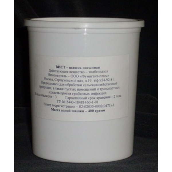 Шашка Вист эффективно справляется с плесенью в подвале или плесенью в теплице. В отличие от серных шашек, она полностью безвредна для людей, животных и самих продуктов питания. Производитель рекомендует использовать Вист для обработки помещений после закладки сельхозпродукции. Это позволит обеззаразить не только само помещение, но и убить все болезни, попадающие в хранилище вместе с овощами, фруктами или зерном.