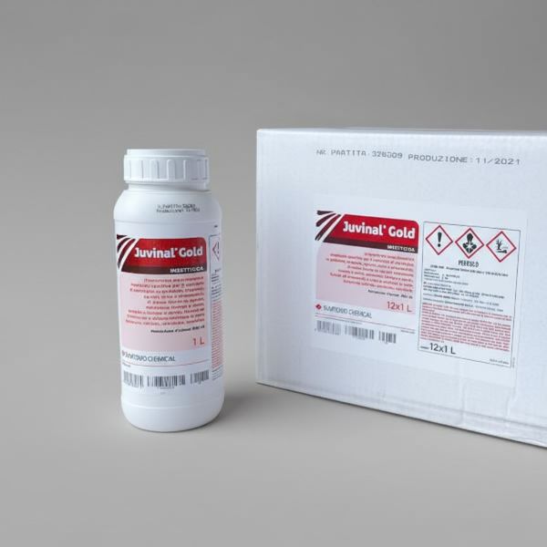 Juvinal Gold — продукт основанный на инновационном активном ингредиенте — пирипроксифен. Он действует путем ингибирования в процессе развития насекомых на всех стадия роста на гормональном уровне. Эффективно применяется против белокрылки и щитовки, характеризуется длительным и стойким эффектом. Благодаря селективному действию препарат безопасен для полезных насекомых в том числе и для опылителей.